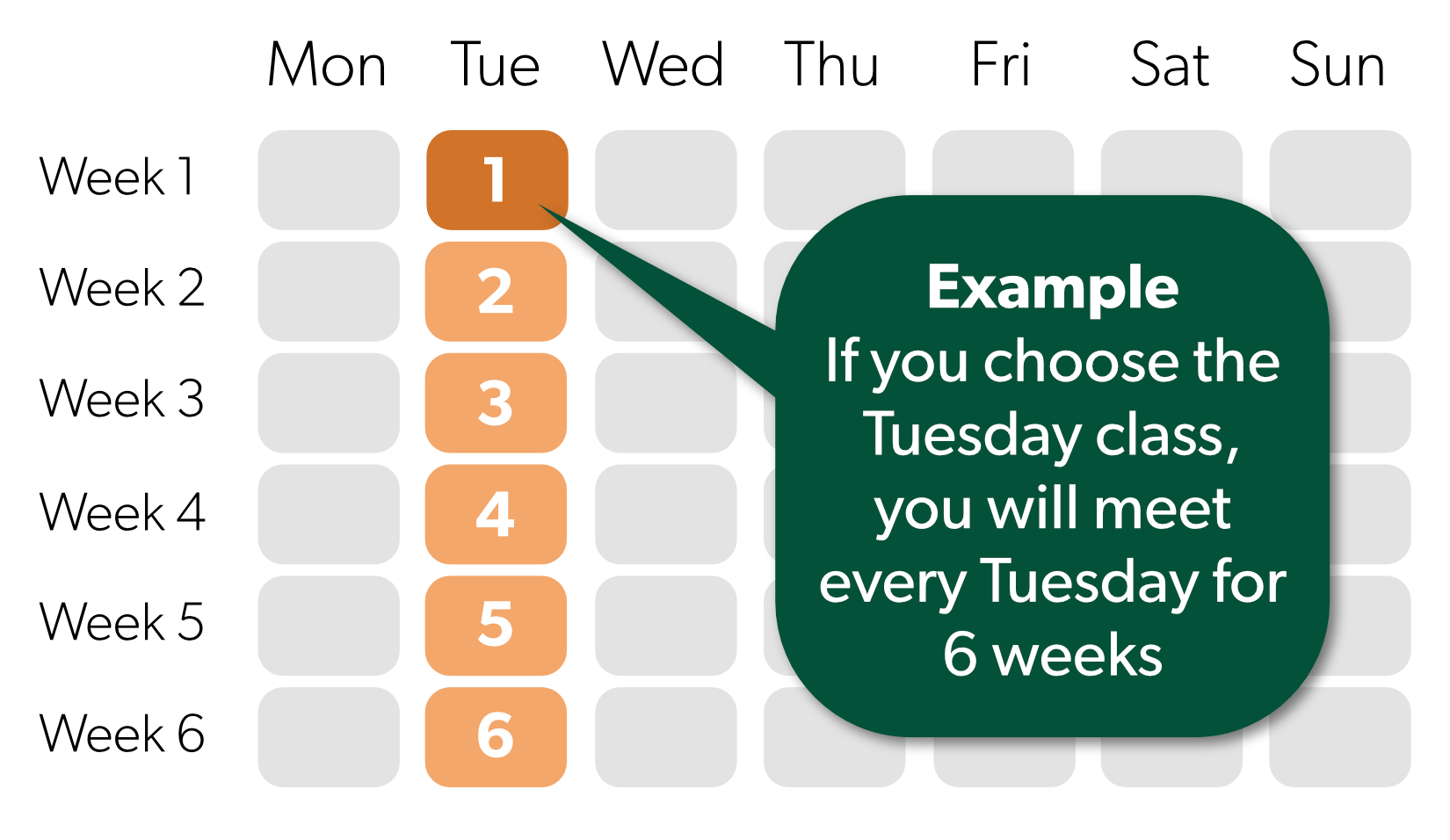 You will need to attend 1 x live class per week, which will be at the same time every week.
