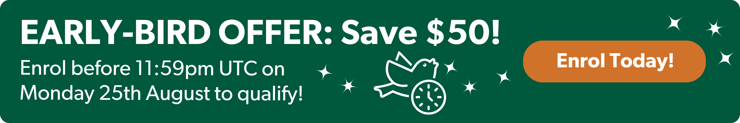 Early-Bird Offer EXTENDED: Enrol by 1st September to save $50!