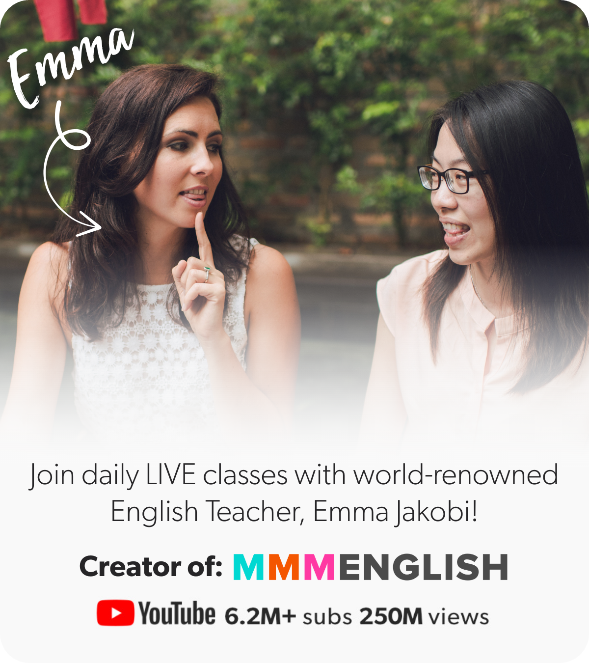 You will join a LIVE class with Emma every day from 2nd to 9th October, where you will learn & practise ONE essential element of English pronunciation each day, including: